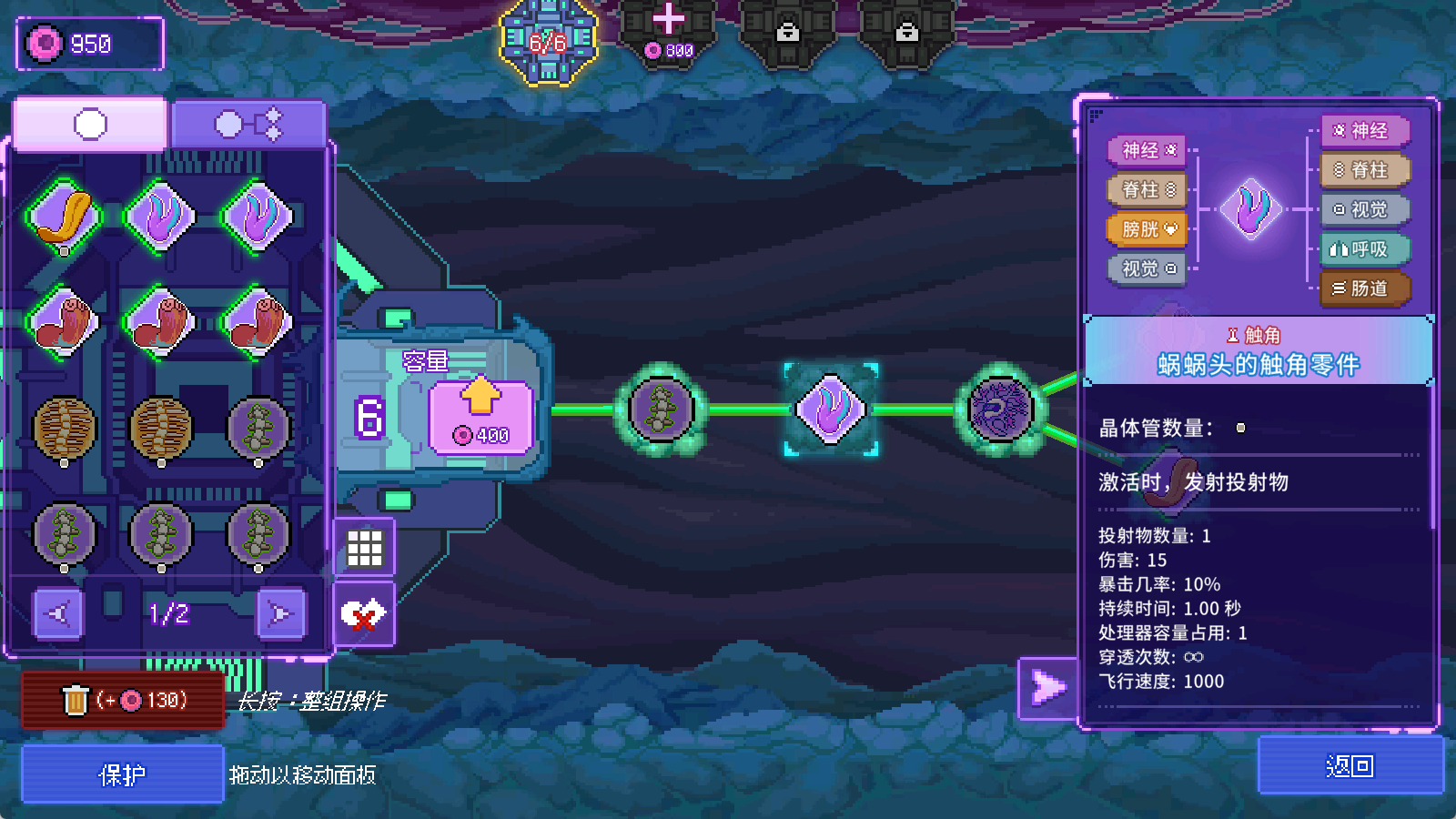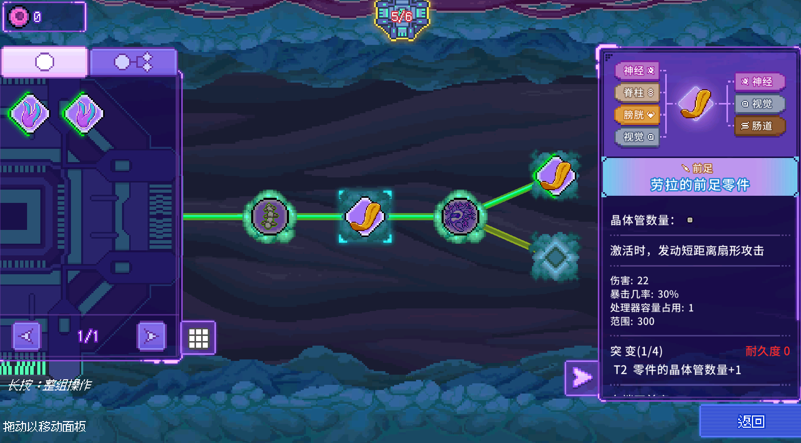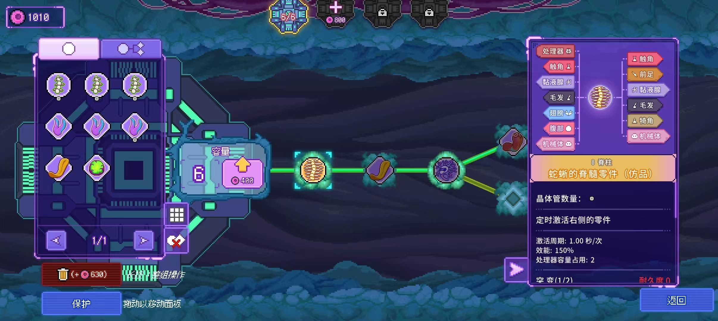 通关1-4后我们会又获得新的反应堆来升级手术台,升级后我们就能升级处理器或者购买新的处理器,还能将不需要的器官转化为细胞。