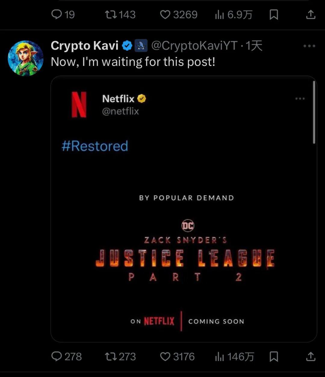 另一边,部分有关扎导会不会回归DC的猜测可能性就接近于零,其缘起是扎克·施奈德离开华纳后签约的正是网飞,并为网飞拍摄了《活死人军团》和两部《月球叛军》,但由于这些流媒体电影项目表现不佳,施奈德的若干后续原订项目都已被网飞砍掉。