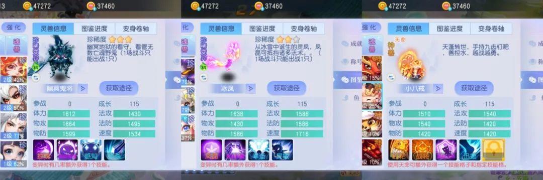 震慑宠物可3选2,甚至3选1即可。鬼将获取成本稍高,但冰凤和小八戒的获取成本很低。