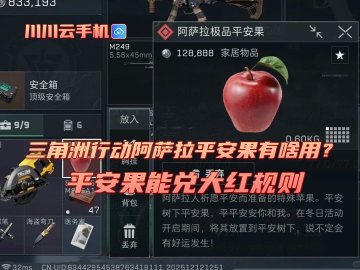 - 开箱兑换:极品平安果开箱必得大红物资(如高额哈夫币)。12月19日起,平安果集市可直接兑换极品果。
