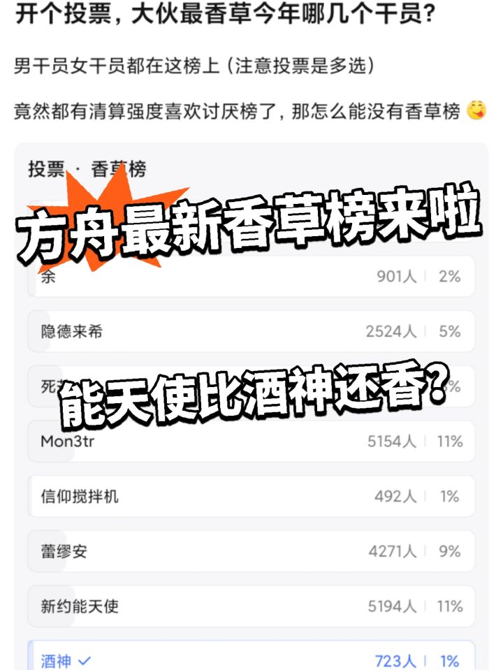 大的来啦家人们! 身为明日方舟每年必备的香草榜,怎么能缺席呢? 近日最新一届香草榜又整活了!