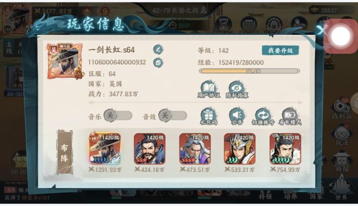 观点:此套满足pvp+日常推图打法,但优先建议觉醒郭嘉,我这个是为了测试强度先觉醒的庞统