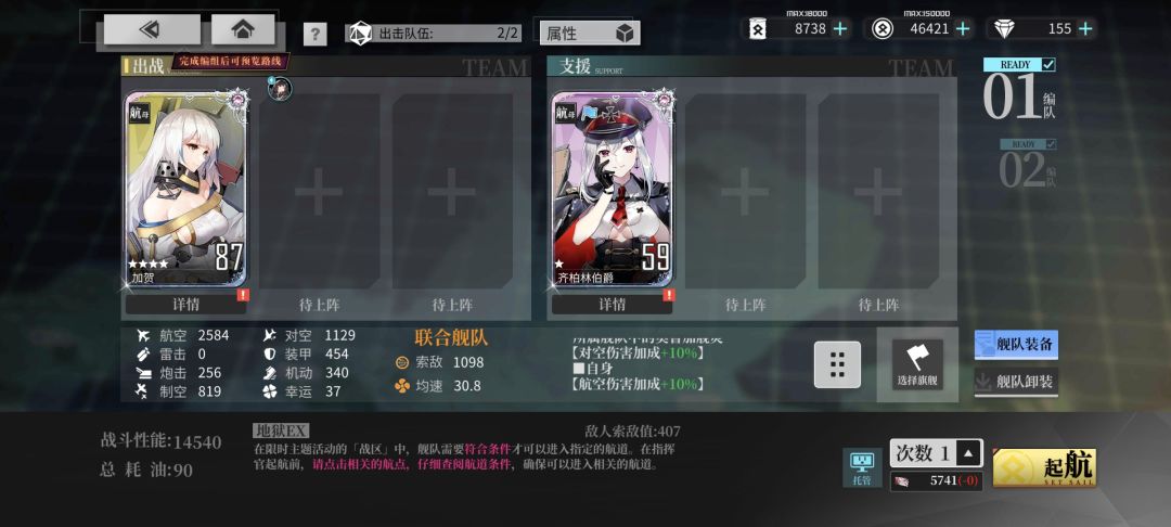 路线CKOP,奥鲁加旗舰,8大船,控制一下航母装母大于等于3即可。可以根据自己的情况上自己要练的角色(我的齐柏林只有5槽),保证生存就用机动装备搭配机动阵。