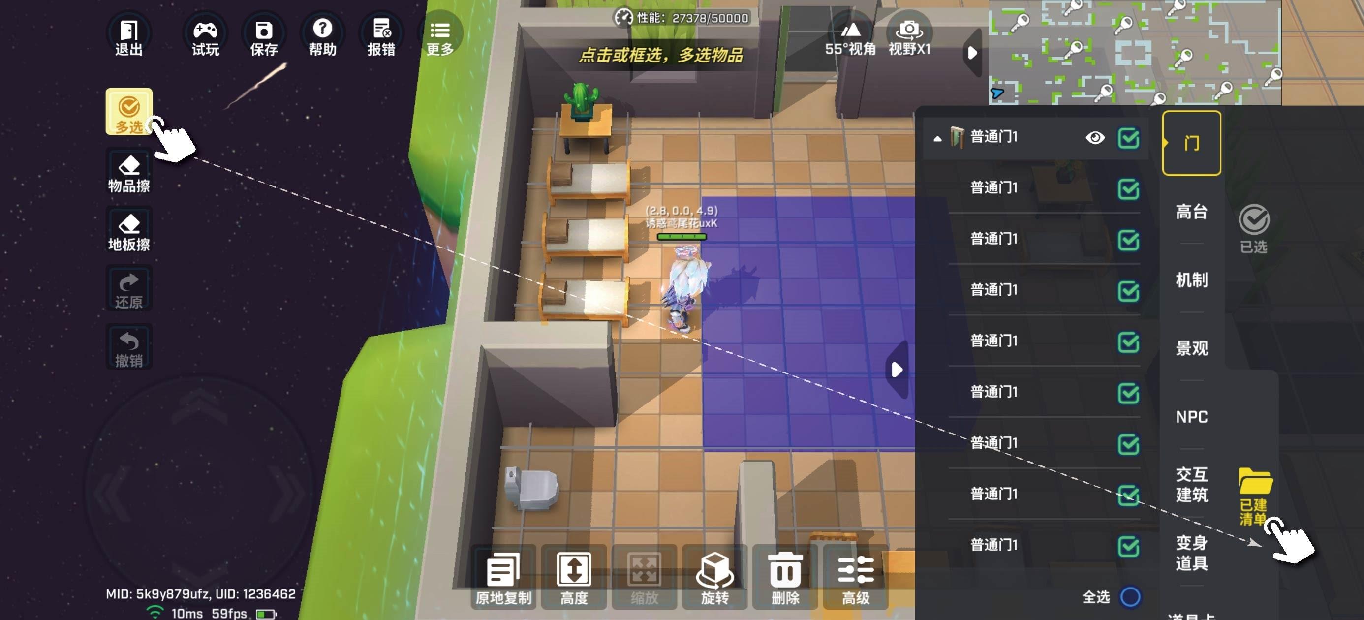 已建清单可以帮助少年们快速选择地图中现有的物品,并统一进行”复制,删除,旋转,应用高级设置“等操作