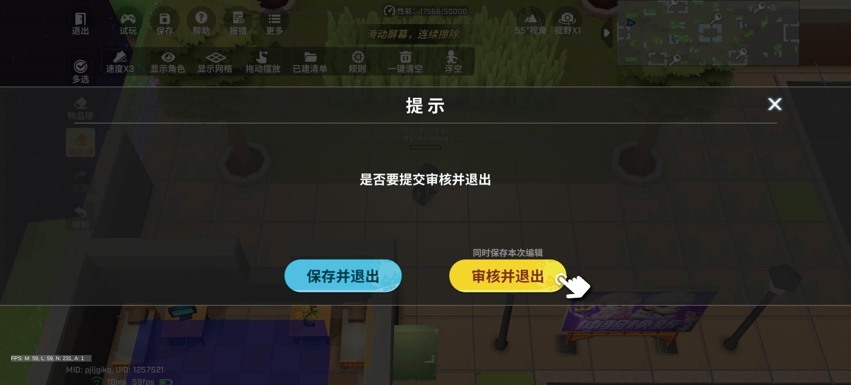 当少年们完成地图创作后,可以选择保存退出编辑,或提交地图审核后再退出。请注意,只有通过审核的地图才能在创建房间时被选用哦。