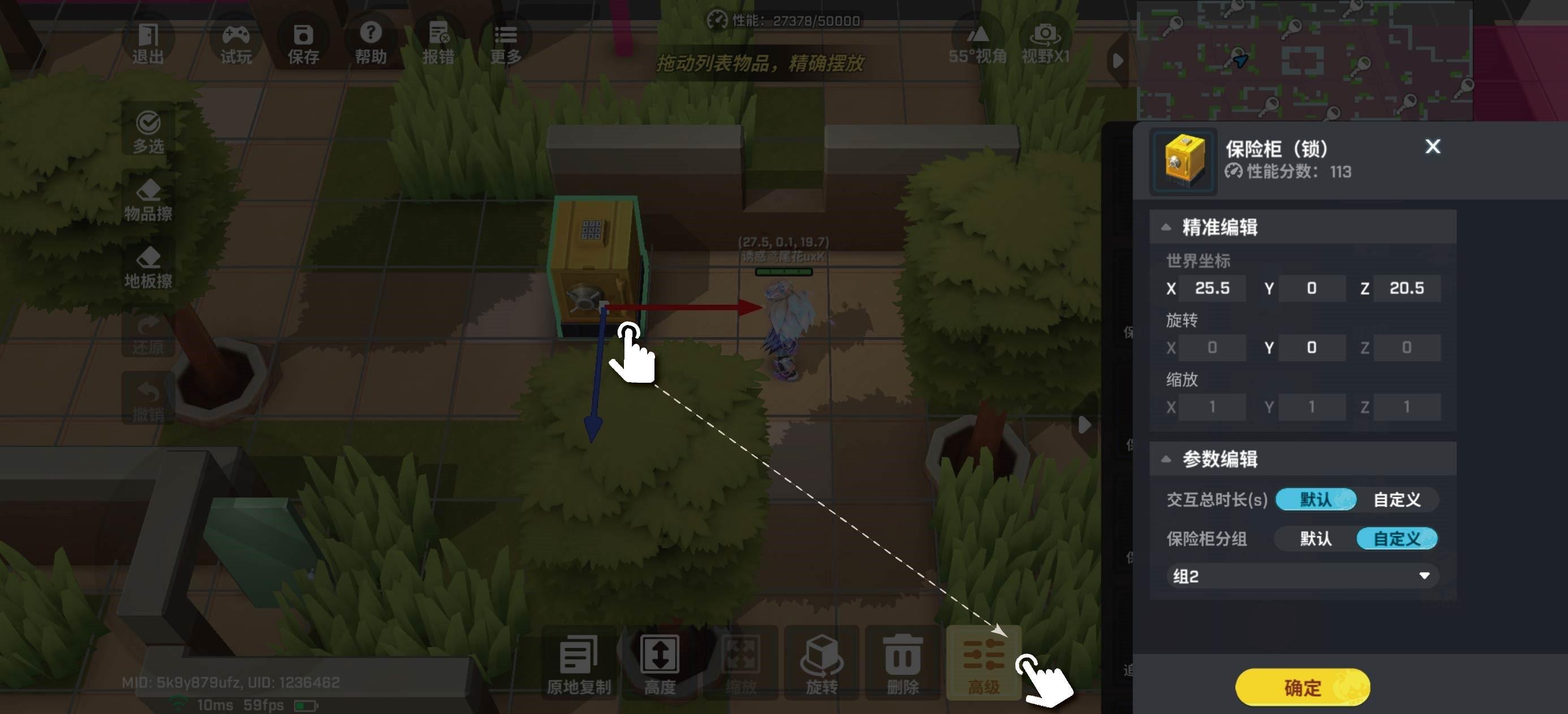 若少年们想对保险柜,逃生门,场景生成器等物品设置”交互时长,锁分组,场景中自定物品生成,和物品生成时间“等功能,可以使用高级设置选项
