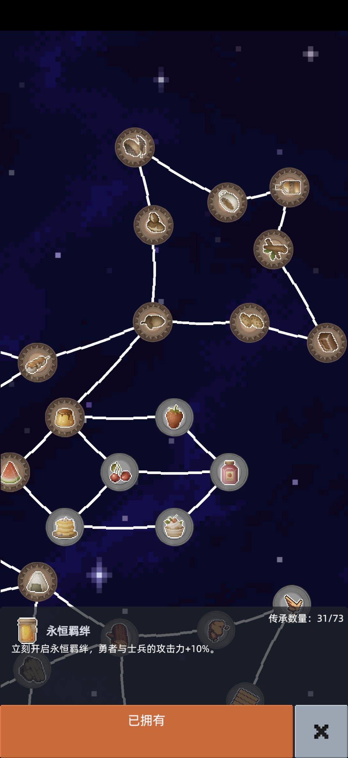 中期:把4号塞勒斯的小技能点满,再把移速传承点满之后,恭喜你可以开始使用连点器挂机了,这个时间段是实力暴涨的阶段。金砖留着买啤酒,宝石优先解锁传承,因为传承解锁后,下次转生将会自动解锁,一劳永逸✨