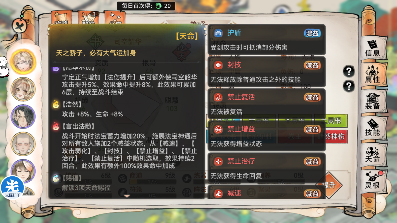 ,有时候功能性弟子比常用弟子更有用,这一期主要介绍最后的三个角色,分别是【辰辰、司空、命中蛊】,往往这些功能性弟子才是突破卡关的诀窍。但这些功能性弟子在使用上频率相对较低,只有在特殊应对关卡才使用。