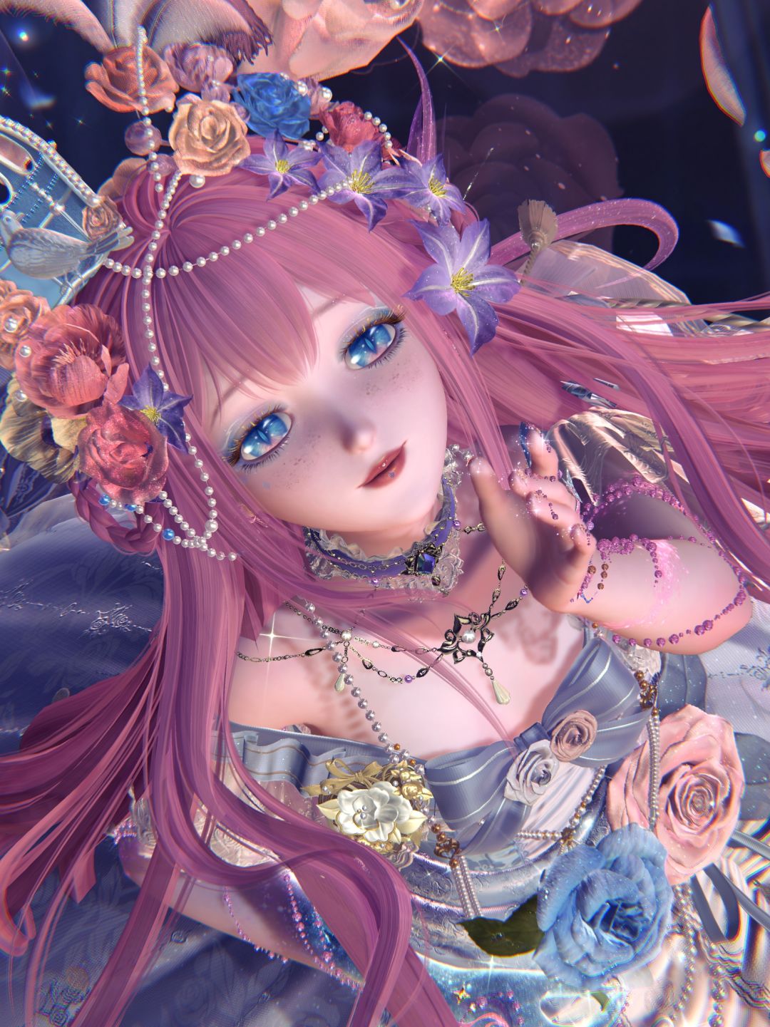粉配蓝是真好看
