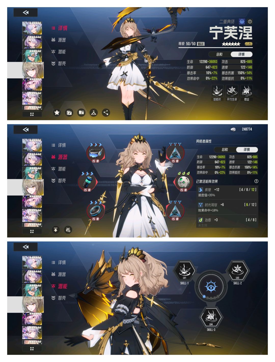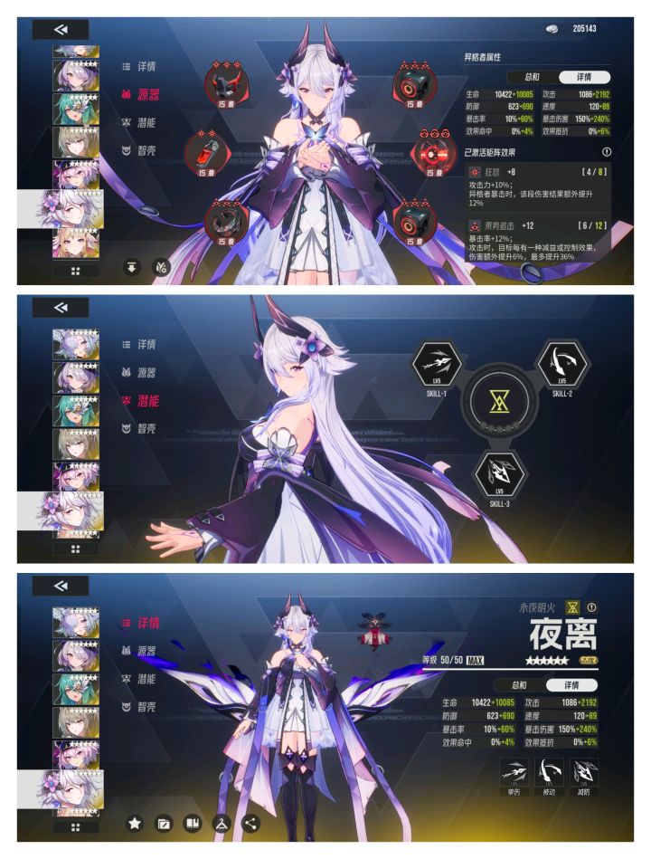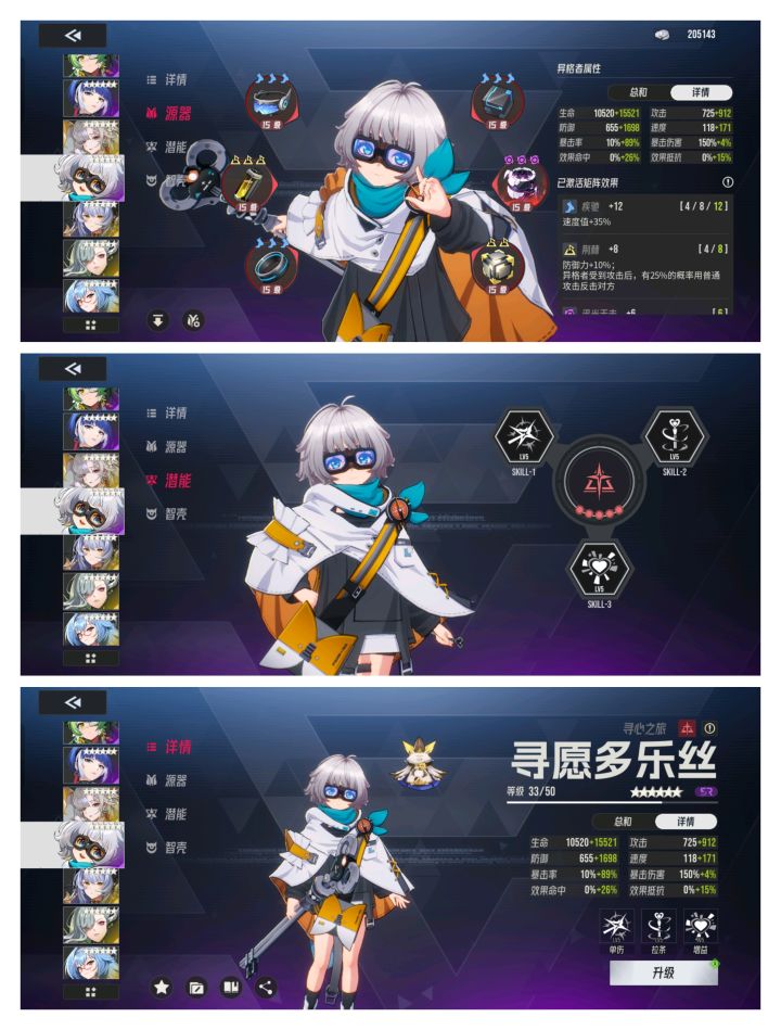 其他的三人都是正常练度。