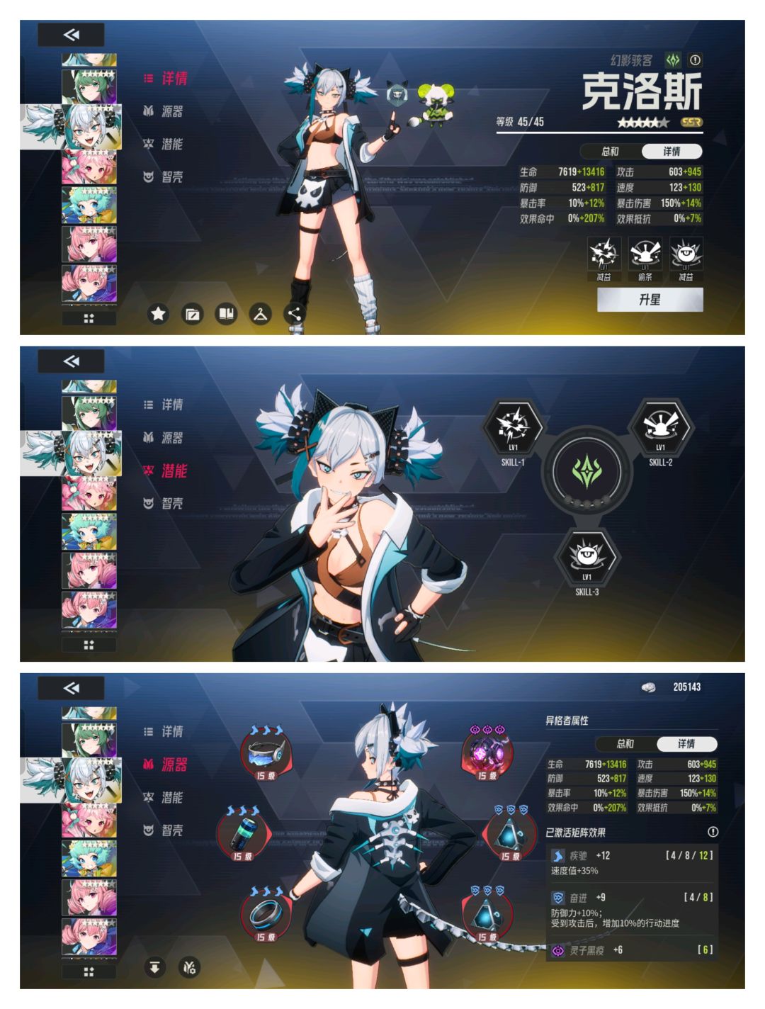 用夜离,妮露,克洛斯,加上七天白给的凌罗。