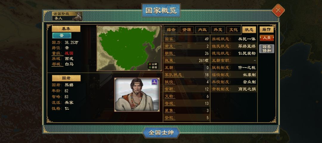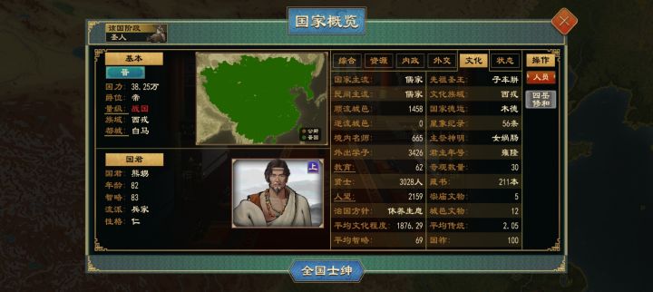 简单说一下我的历程:边统一中原边造十个九级城防,旁观继承西戎方国阶段国家,换芈性收集方国政策人才,分账迁都(造文化顺流),建郡国纪元王朝有统一四海,分封家国一体点完有用的方国政策,统一降爵会盟组建禅让王朝,再转天子纪元(窜不了宗法分封制王朝,因为匈奴王朝没有天命,就没有名分或者名分效果生效篡位),留分封的西戎族域国(留变回西戎族域的路),跟其它国家会盟变中夏族域(进礼法阶段族域是中夏的,有所有礼法流派政策,其他族域只有三流派政策),分账迁都造文化顺流,分封家国一体点完有用的礼法政策,威压西戎族域国变先王,降爵附庸转族域,照搬上面或者建卿士加施政效率。