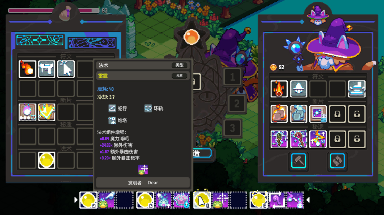 我个人觉得在这款游戏中,构建法术比用自己构建出来的法术闯关会更有意思。游戏中。第1个发明该魔法的人会在下面加上发明者谁谁谁,例如我的steam id叫dear。就有一个魔法我是第一个创造的!