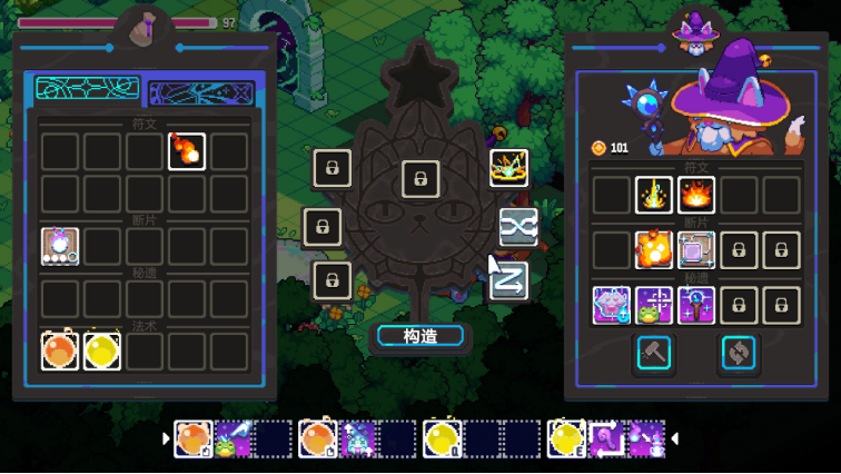 不过目前游戏只解锁了123共三种构造,看目前锁的格子,一共是支持7种符文相互结合,例如我们可以把上述的三种元素全部混合,然后再加上一些更强大的效果。我都不敢想届时场面会有多华丽,不过目前在试玩demo中是无法体验到的,只能期待游戏早日上线了。