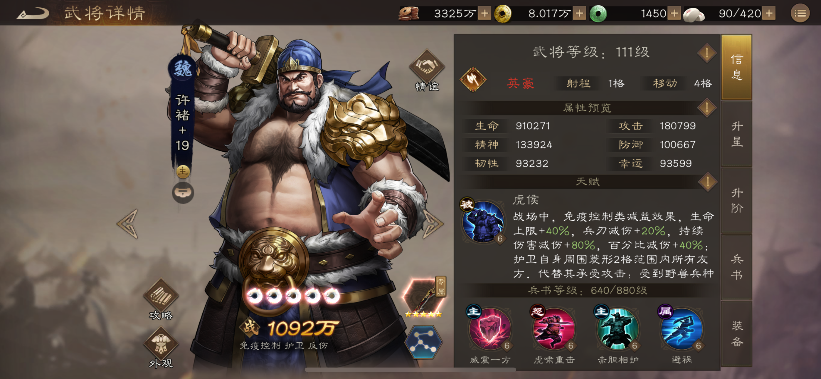 而周瑜,只要满星满神兵,就可以应用于几乎每个场景(除了部分打桩不行)持续伤害输出拉满,装备星符更多是锦上添花。许褚,护卫特殊机制,高难度副本几乎必上。PVP一哥,同战力没许褚的肯定打不过有许褚的,后期又保值。所以没练周瑜许褚的还是优先补满这俩,补满了再考虑马超吧