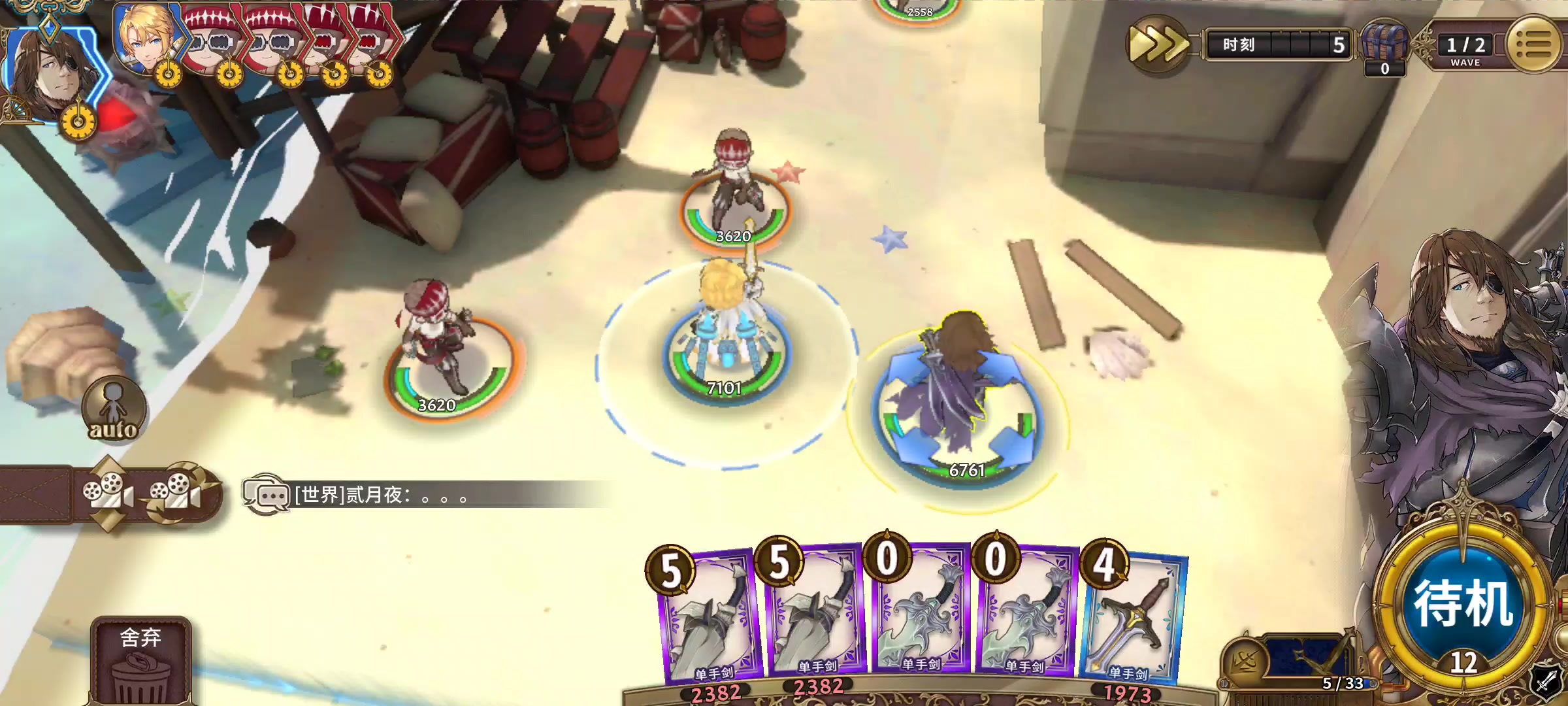 4.路撒:配记者夏洛蒂,配摩根,配背刺剑,配维罗妮卡,配一切剑士。两人即成队,很肉也有一些输出。首抽有路撒推荐练起来开荒,因为日后你总会抽到摩根,维罗妮卡等其它剑士,实在不行配系统送的卡莲也能凑活着上。剑士武器成型快,能打能扛,但受地形和机制等影响的情况比较多。开荒队锁定双剑后,剩下两个位置其实很灵活,在血量压力不大的小关卡组成2剑2弓或2剑弓法的纯输出前后排组合打起来很流畅。打大关卡则带上书士辅助。路撒即便没机会开大依然能起到增加手牌数,增加剑士机动性和力量,以及震盾等效果。以下为简单演示。