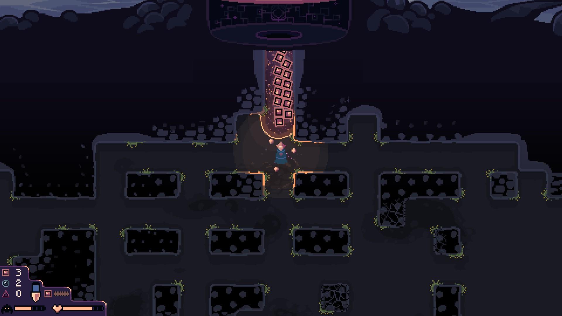 作为一款肉鸽游戏,本作提供了一套紧张又刺激的玩法循环。在每次开局时,玩家需要控制角色在穹顶之下挖矿,并把矿物运回家升级基地设施和科技树。