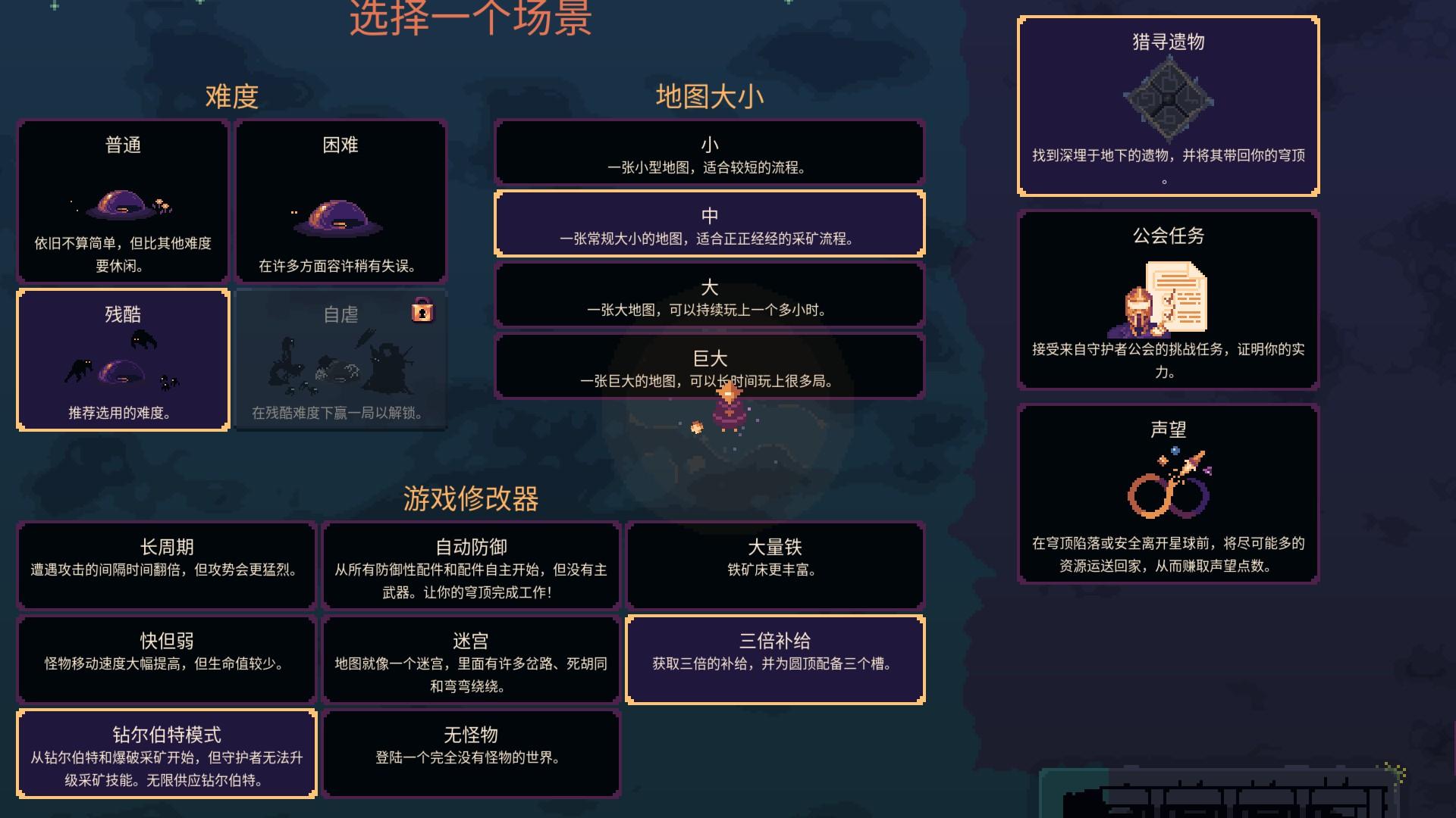 除了初始可以选择的配件,在局内挖矿探索时,还可以随机获得配件并安插在穹顶内,获得新的能力,甚至是自动挖矿小助手“钻尔伯特”。