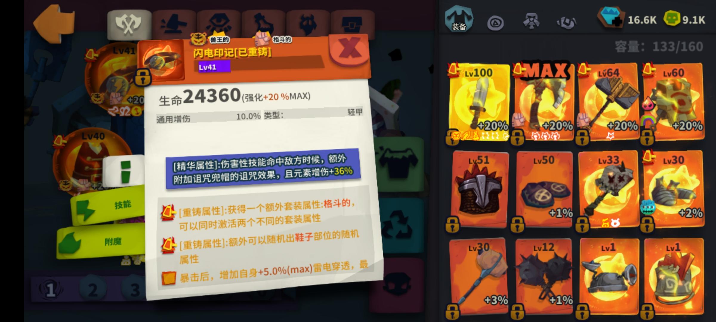 闪电印记还得提升物攻,基础高了伤害才能上来,到T是太难了!斧子配合多波次和召唤物聚合每多一个召唤物增加百分之10的攻击,还能提升点物攻并保持一个变异召唤物在场维持加8球!