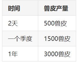 1年采集3000兽皮,可以做80套春衣和80套秋衣,或者80套冬衣。做满80件需要2年。