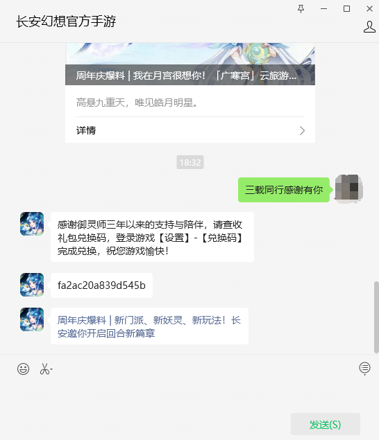 最后,御灵院也带来了一份薄礼,感谢御灵师们对长安的支持和陪伴!前往公众号主页发送关键词:三载同行感谢有你 即可领取礼包兑换码。