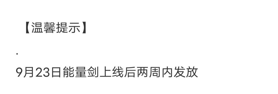 9月23号能量剑上线两周内发放奖励
