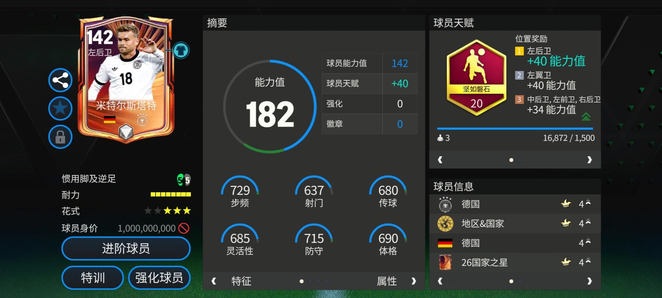 米特尔斯塔特配备了坚如磐石天赋,着重提升了他的多项防守端数据。作为边后卫,米特尔斯塔特身材强壮,同时也有一定的花式摆脱能力。实战中,麦米特尔斯塔特的阵地防守表现稳定,防内切卡位硬朗,封堵速度非常快,可以有效遏制对手的内切得分。