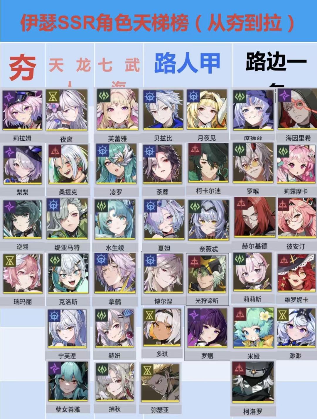 伊瑟所有SSR角色天体榜单(从夯到路边一条)