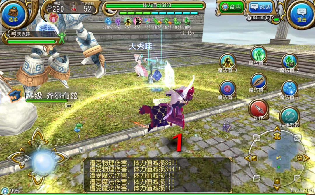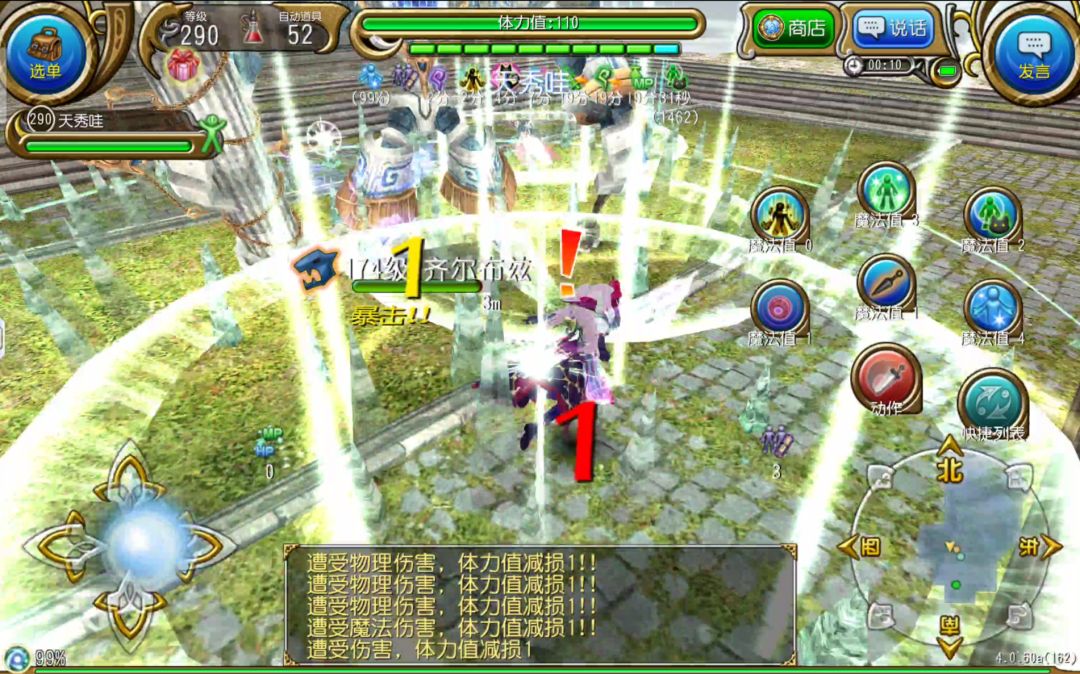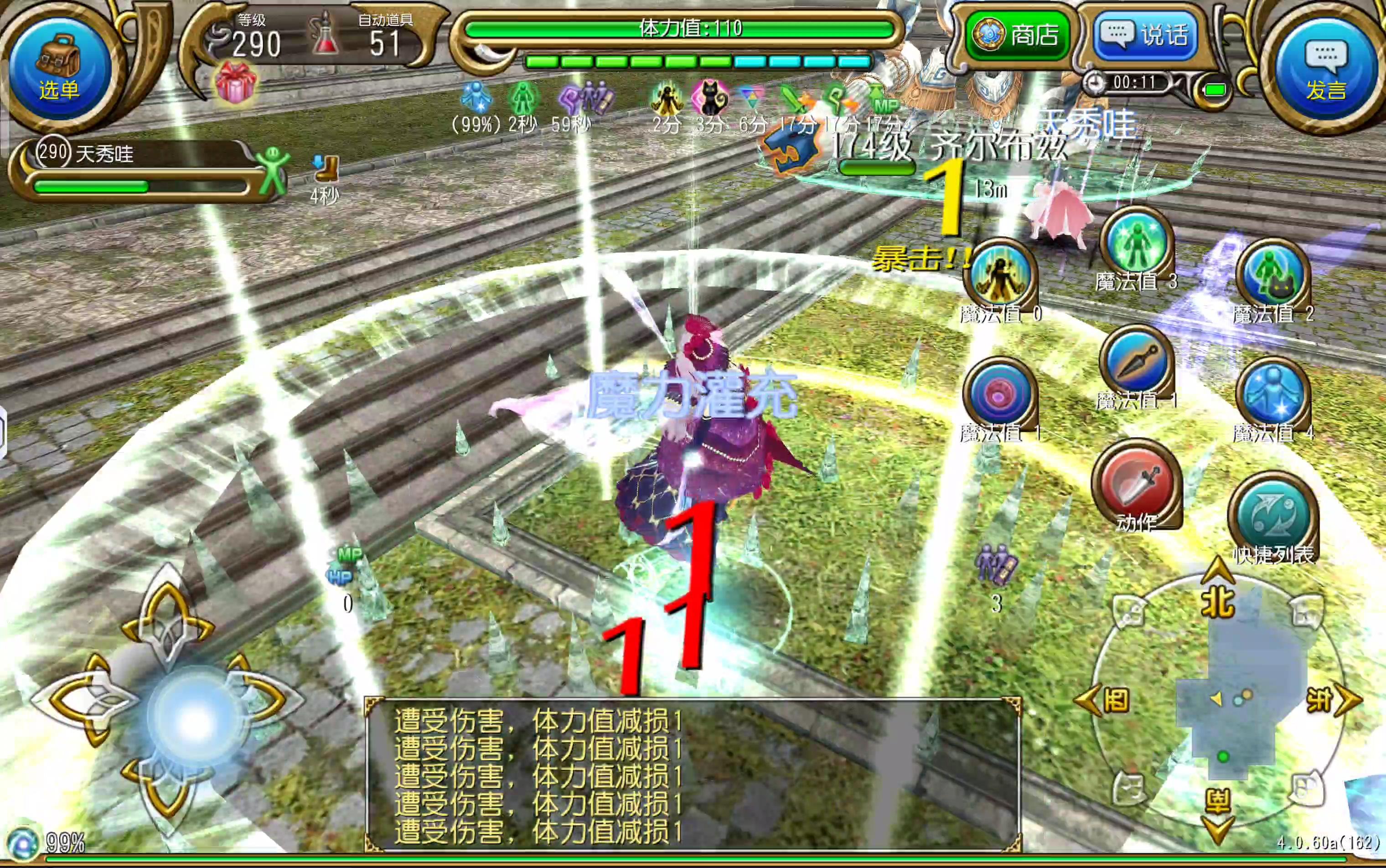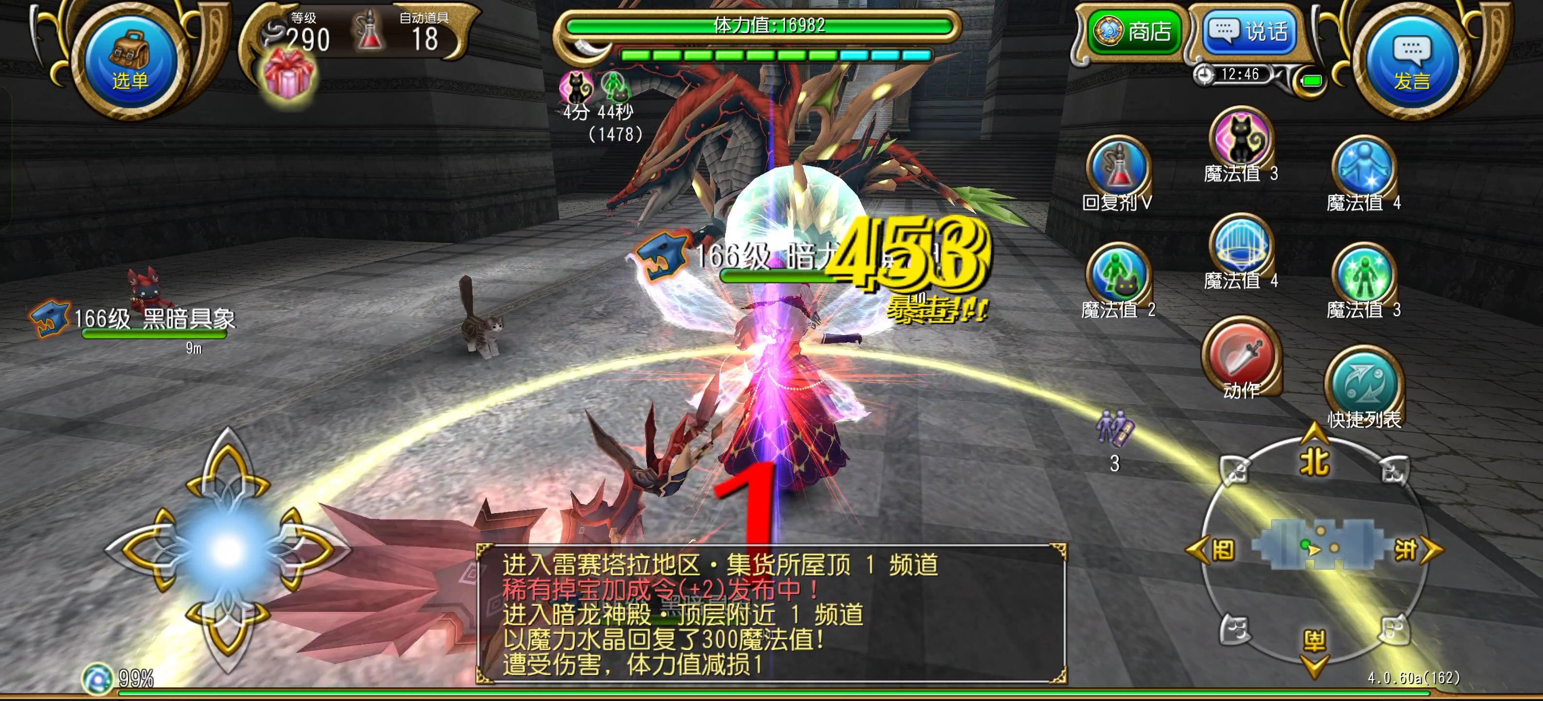 可这就显得很迷惑,那石肤假血到底吃不吃结界减伤?这里以暗龙魔法伤害的柱形激光为例,我们来看看不开结界的石肤掉血和站在结界中的石肤掉血有何区别: