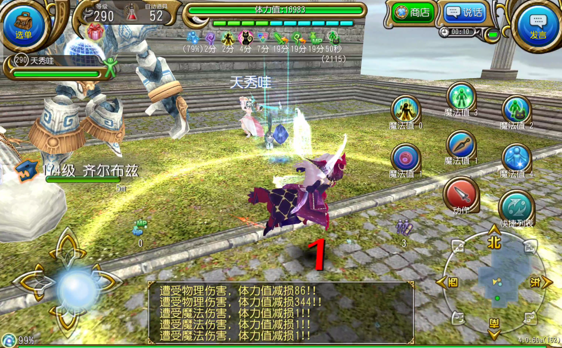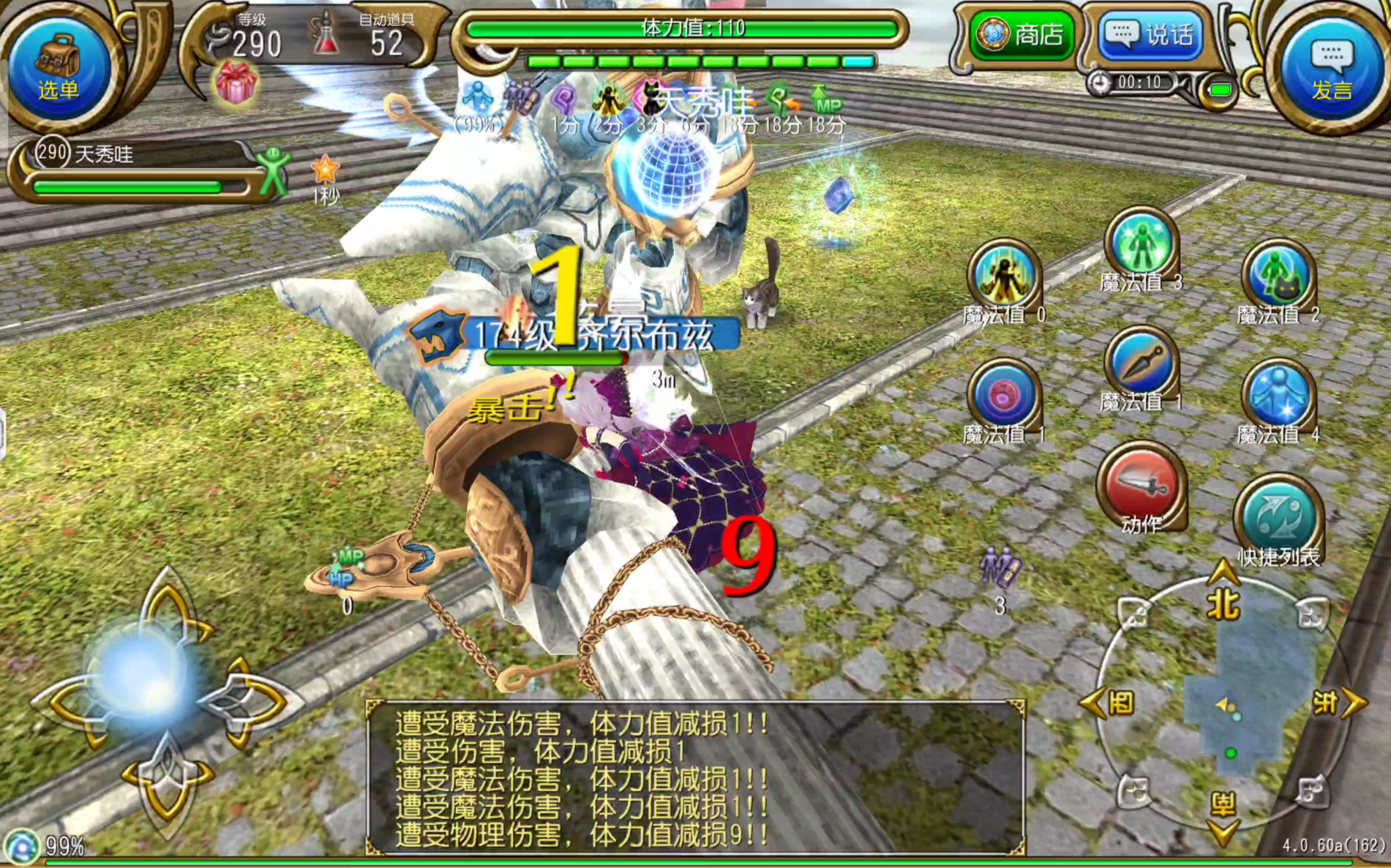 ↓开启结界且站在8米外,满石肤假血受击一次后,假血掉到了2683,2952-2683=269