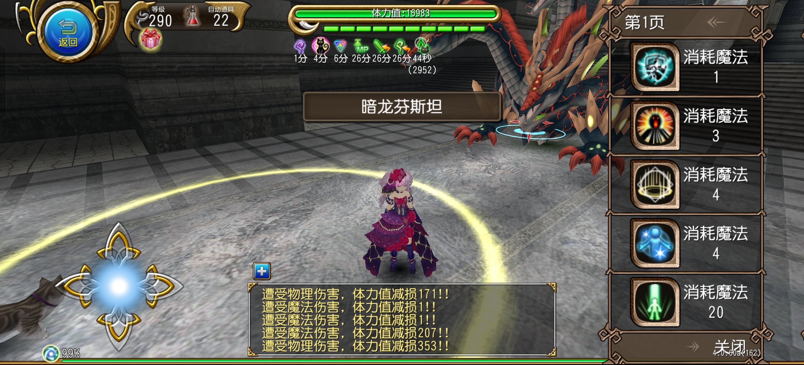 为了印证这一点,刚好结界对百分比伤害的减伤,布偶上并未写有“首先使伤害值-xx%”的描述,那么还是以暗龙为例,暗龙召唤的魔剑小怪是百分比攻击,我们再来看看吃到魔剑小怪百分比攻击时,不开结界的石肤掉血和开结界的石肤掉血有何区别: