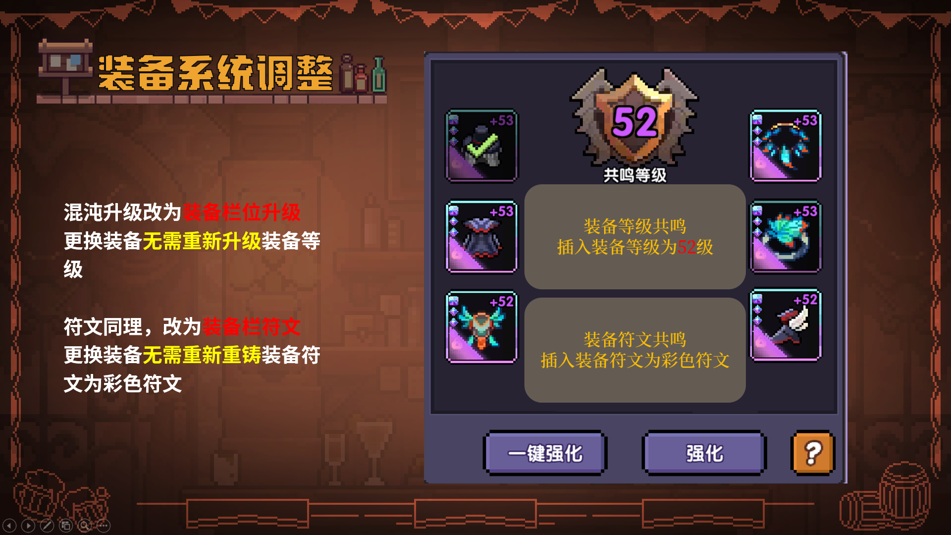 为了让大家不再因为繁琐的属性洗练和每次更新装备后重新养成而头大,我们对装备系统进行了优化升级: