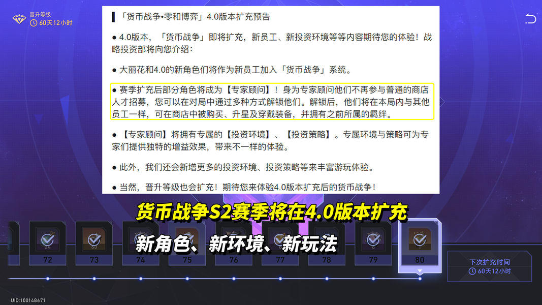 至于扩充的S2赛季,则需等待后续4.0版本,届时也会新增角色、环境等内容,同时玩法上也有变化,可获取特殊的【专家顾问】角色,提供专属环境效果,组特殊流派的可控性更高~