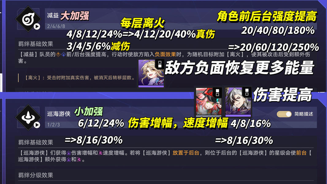 【「减益」「击破」大幅加强、「巡海游侠」「星核猎手」少量增强】