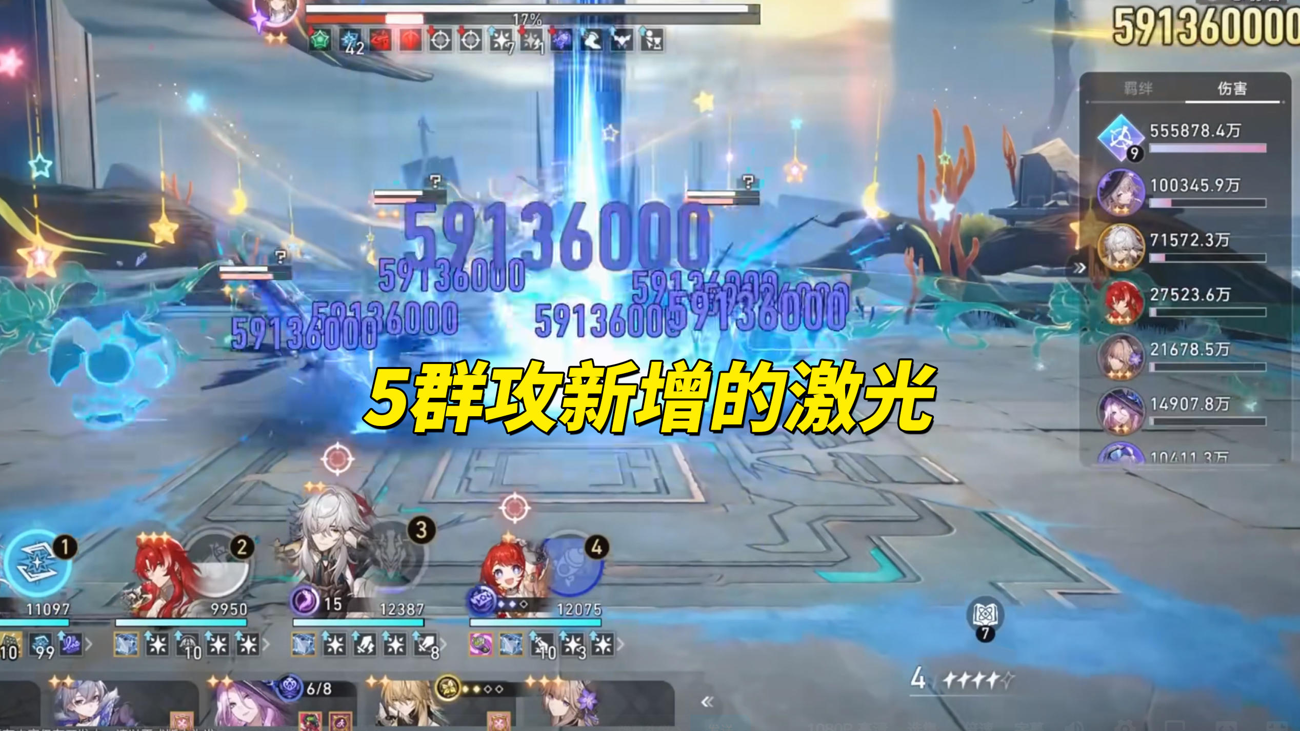 「群攻」为羁绊成员新增12/24/36/60%“幸运一击伤害”效果,达成5群攻时借力球会额外发射激光造成伤害(受6次攻击触发),达成7/9群攻时首领易伤提高。