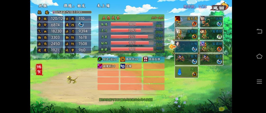 115级换宝塔妖。140法术系换狂犬。