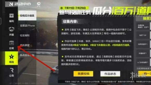 极品飞车集结公测通用兑换码大全一、兑换码通用兑换码:ZZZFREE100、BBBHXTJ200、NNNFYJC400二、兑换方法1、在游戏主界面中点击活动中心,点击右侧的日常。