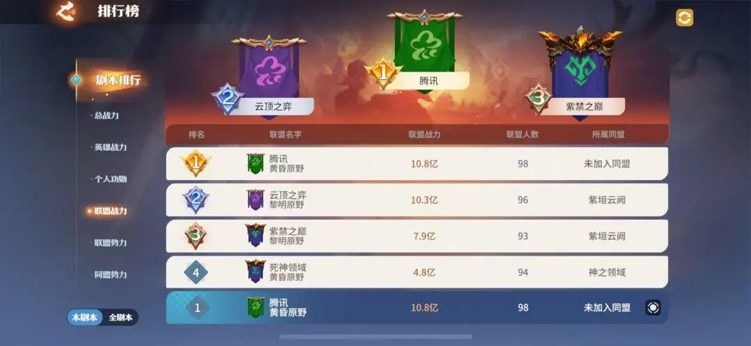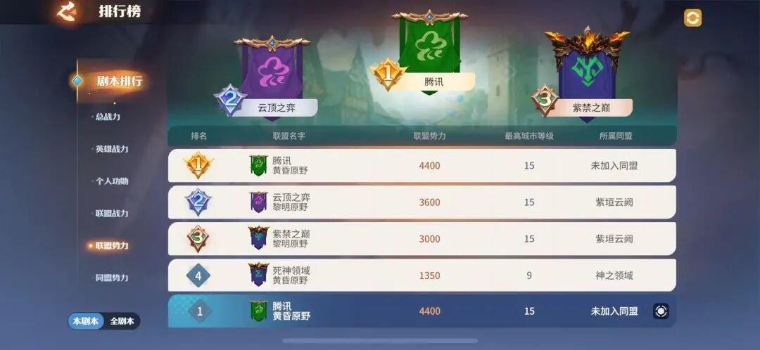 S-0054服,【腾讯】【云顶之弈】【紫禁之巅】与【死神联盟】等联盟同在本区,目前全区风平浪静,各盟均处于养精蓄锐、稳步发育的阶段。