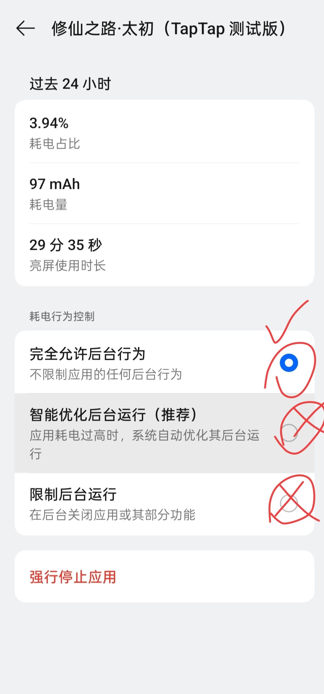 可能打X的开着 调到完全允许后台行为再试试 如果不行请联系修仙的萝卜可能不是这个问题
