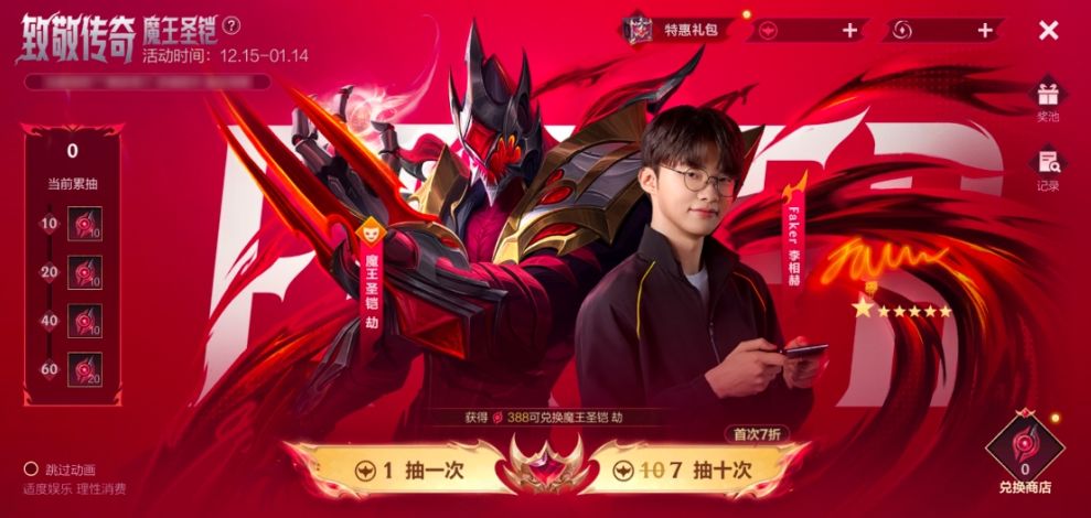 致敬传奇系列Faker联名限定皮肤-魔王圣铠 劫将于明日正式上线,召唤师可以通过参与“致敬传奇 魔王圣铠”活动获取限定皮肤,活动将于12月15日(明日)11点各大区陆续开启。