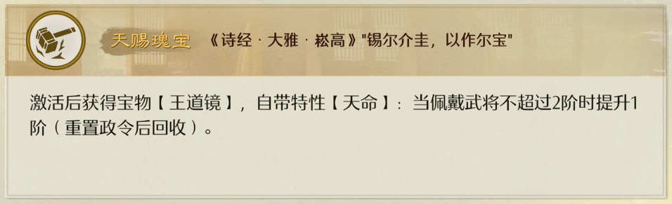 「天赐瑰宝」可使王道玩家获得专属宝物「王道镜」。