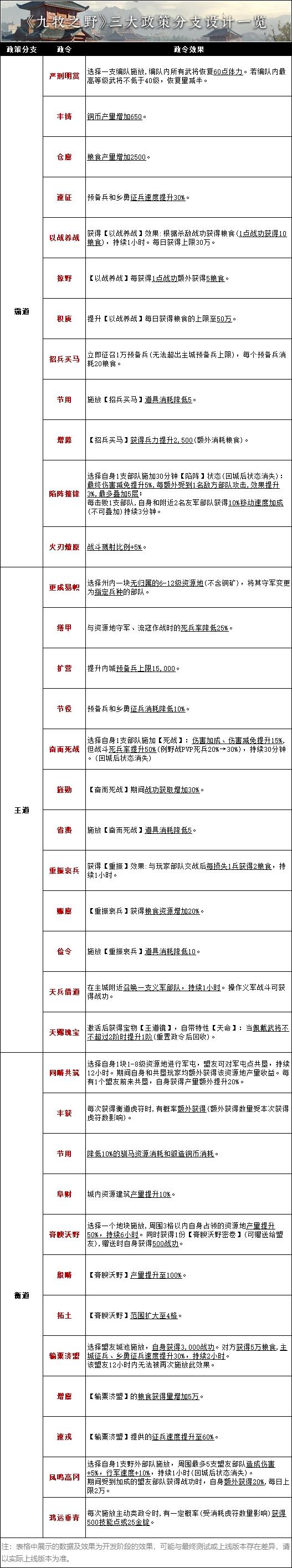 最后附上三大政策分支的政令效果详情,希望对你的备战有所帮助: