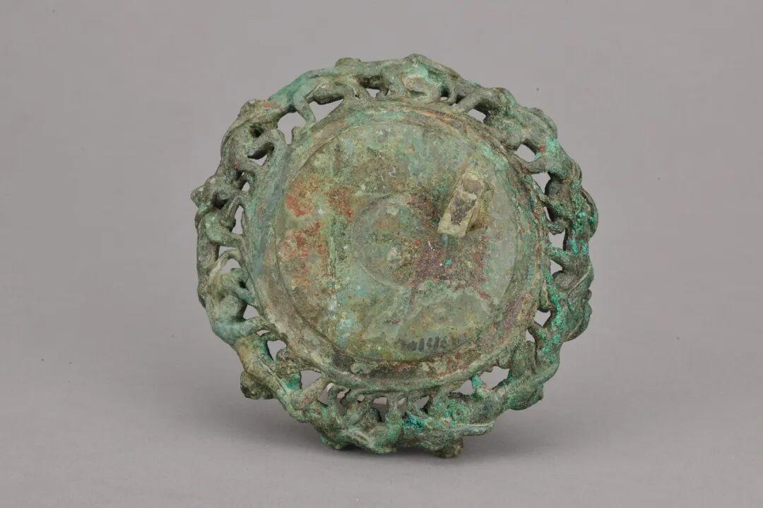 而滇地的青铜匠人以高超的镶嵌工艺,将其与本地图腾融合,铸成了这枚跨越山河的文明结晶。汉武帝经略西南、开设郡县后,这样的交流更加频繁。滇地的工匠、纹样与工艺观念,随着人口流动与物资交换,悄然渗入中原的工艺体系。东汉时期,中原器物上日益活泼的动物纹饰、更富韵律的构图方式,或许就藏着滇文化审美的遥远回响。这枚扣饰,不仅是古滇国的瑰宝,更是文明交流的“活化石”。