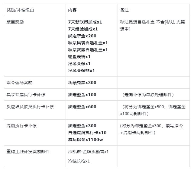 - 「私法」角色自选礼包 ×1 (可选范围:不含「光翼装甲」)