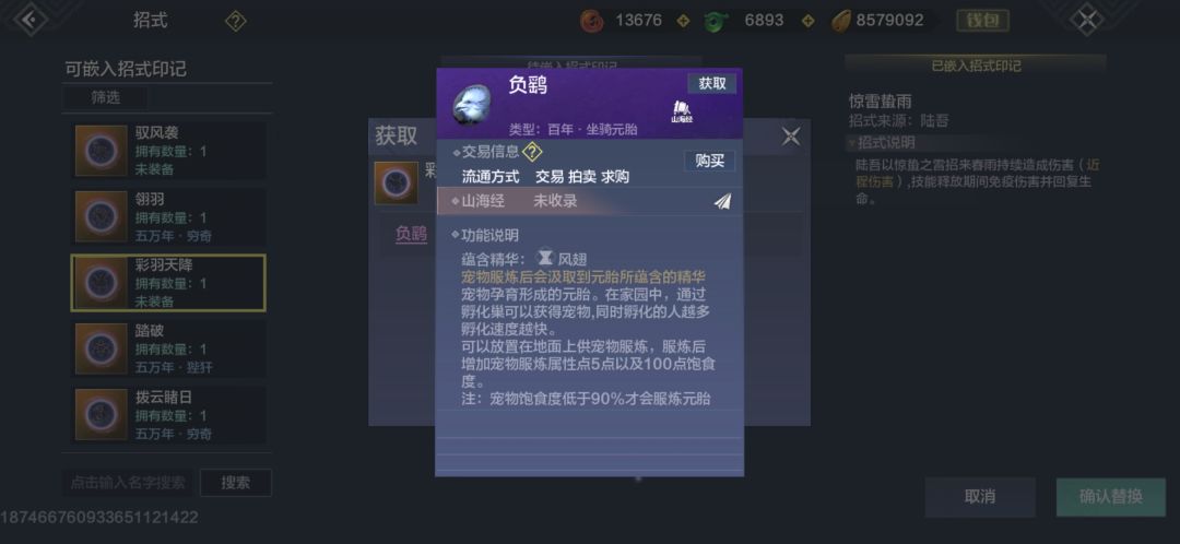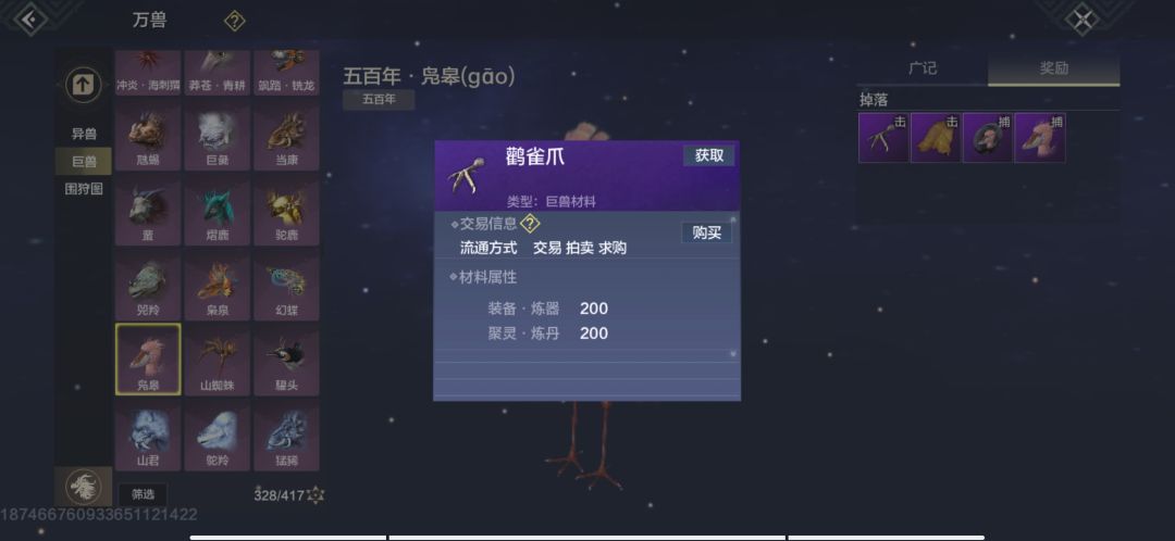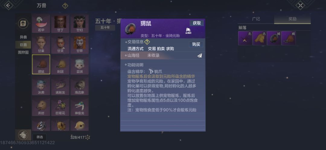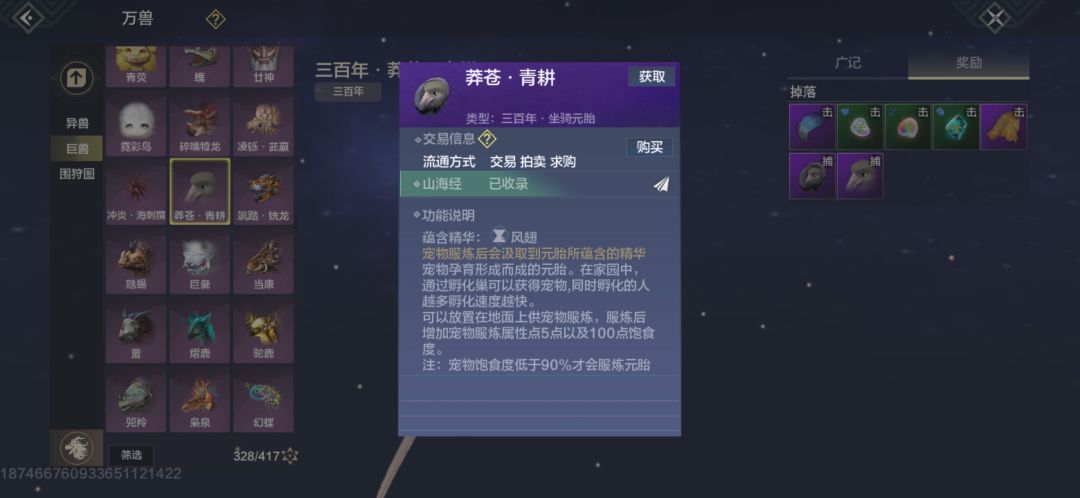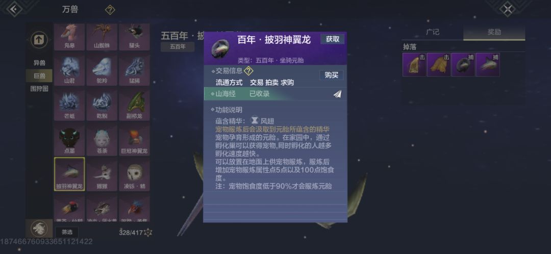 6.负鹞,灵力充沛巨兽无材料掉落打死经验较高,稀有度2颗星,建议抓蛋,出蛋拍卖行(20-30勾),三山刷新。魂技“彩羽天降”。