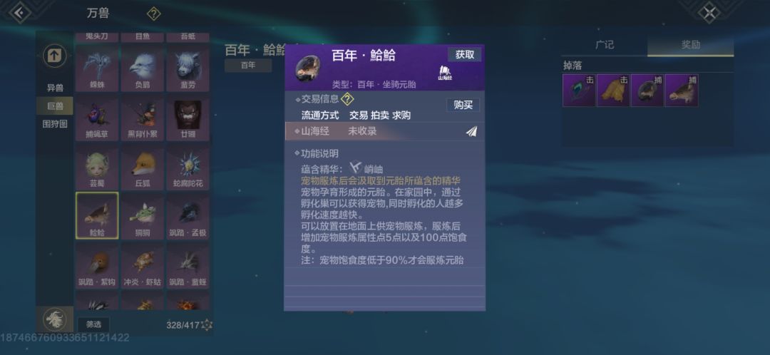 2.百年·鮯鮯,高贵的峭岫精华系列,稀有度4星,抓蛋或杀都行,出蛋拍卖行(20-40勾)深海区域刷新。