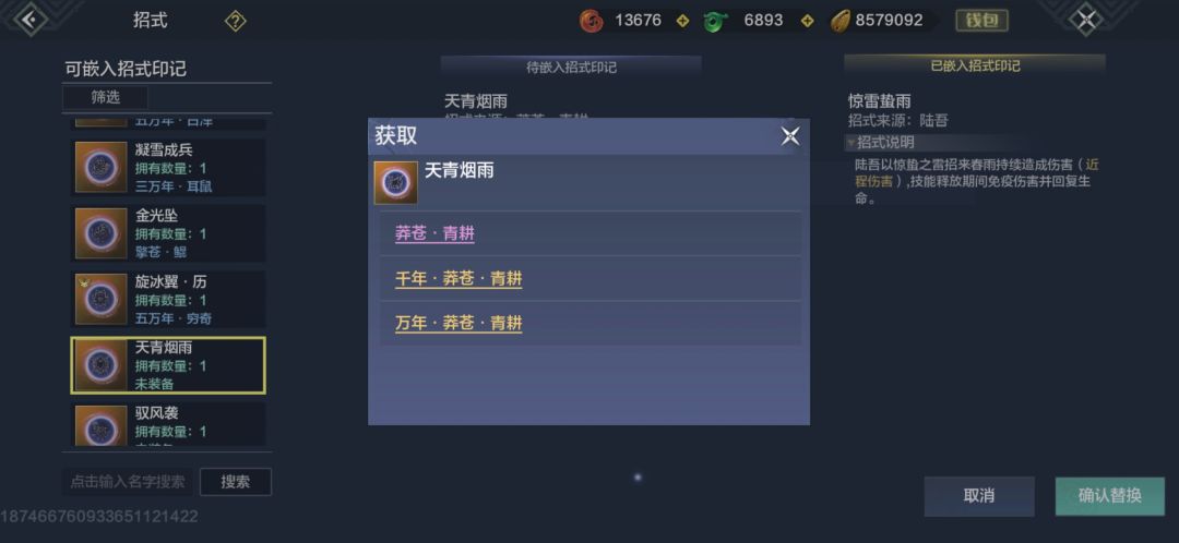 魂技天青烟雨,木系伤害 t1魂技,多段伤害,容易丢失目标,伤害高冷却快,适合飞行宠物如白泽,穷奇等。