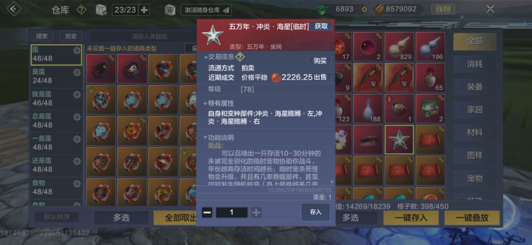 1.五十年·凌铄·寄居鳌蟹,稀有度5星,一定要抓蛋,出蛋直接上拍卖行(30-50勾),大荒叫卖求购(20-30勾)。可以扣魂技“金钳到”,常刷新在三山(东山,南山,西山)的湿地,沿海区域。