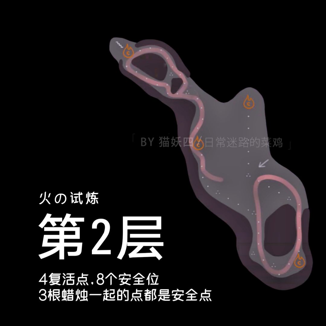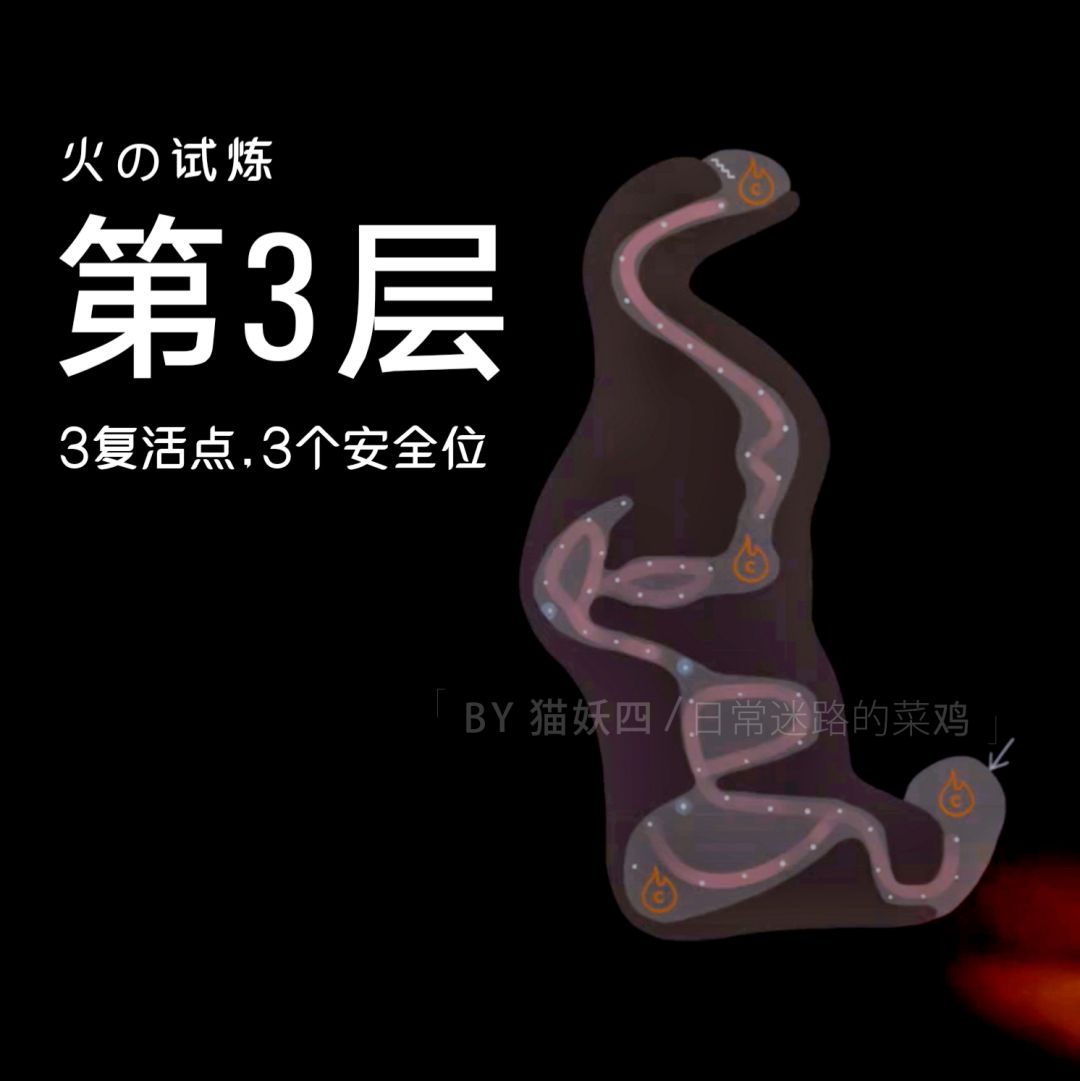 第二层:有火龙但不多,头顶飞过的多,凡是3根蜡烛一起的点都是安全点,图也简单
