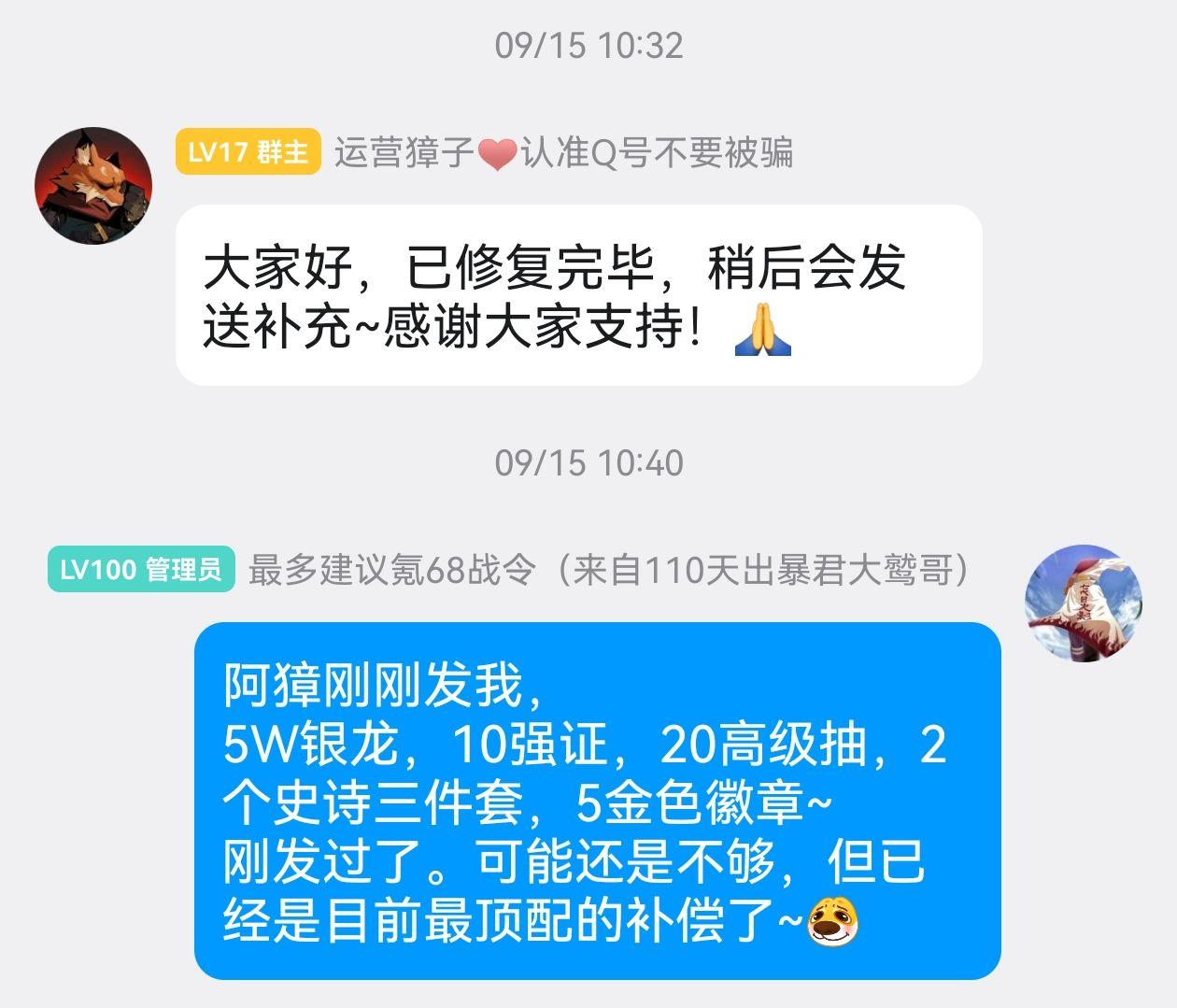 补偿可以参考上一次情况,如果因为周日进不了游戏还有大额额外损失的,可以进群私聊獐子(譬如死光了没法救)